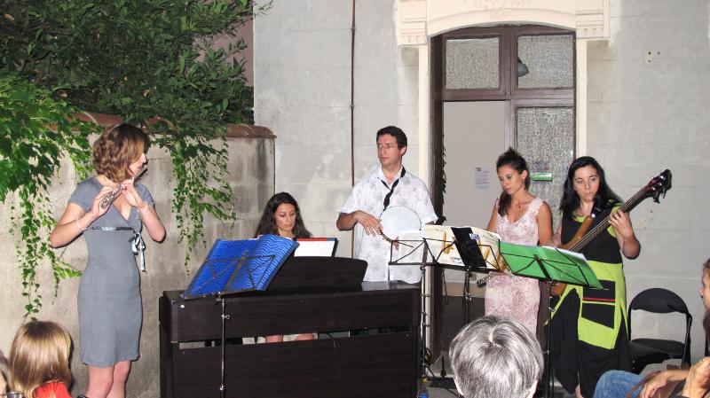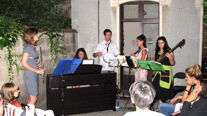 AMIES (Atelier de Musiques Improvisées Expérimentales) : Valérie et Anaïs, flûtes traversières ; Béatrice : chant et basse ; Aurélie : piano ; Frédéric : flûte traversière, saxophone alto, petites percussions et direction.