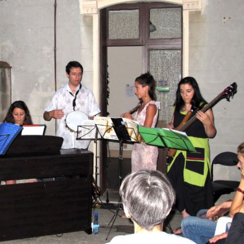 AMIES (Atelier de Musiques Improvisées Expérimentales) : Valérie et Anaïs, flûtes traversières ; Béatrice : chant et basse ; Aurélie : piano ; Frédéric : flûte traversière, saxophone alto, petites percussions et direction.