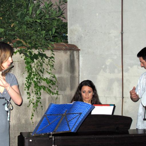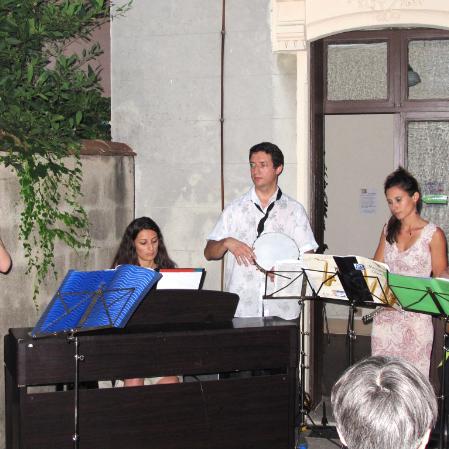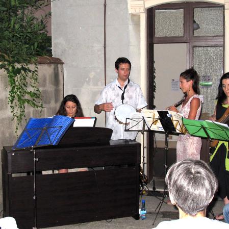 AMIES (Atelier de Musiques Improvisées Expérimentales) : Valérie et Anaïs, flûtes traversières ; Béatrice : chant et basse ; Aurélie : piano ; Frédéric : flûte traversière, saxophone alto, petites percussions et direction.
